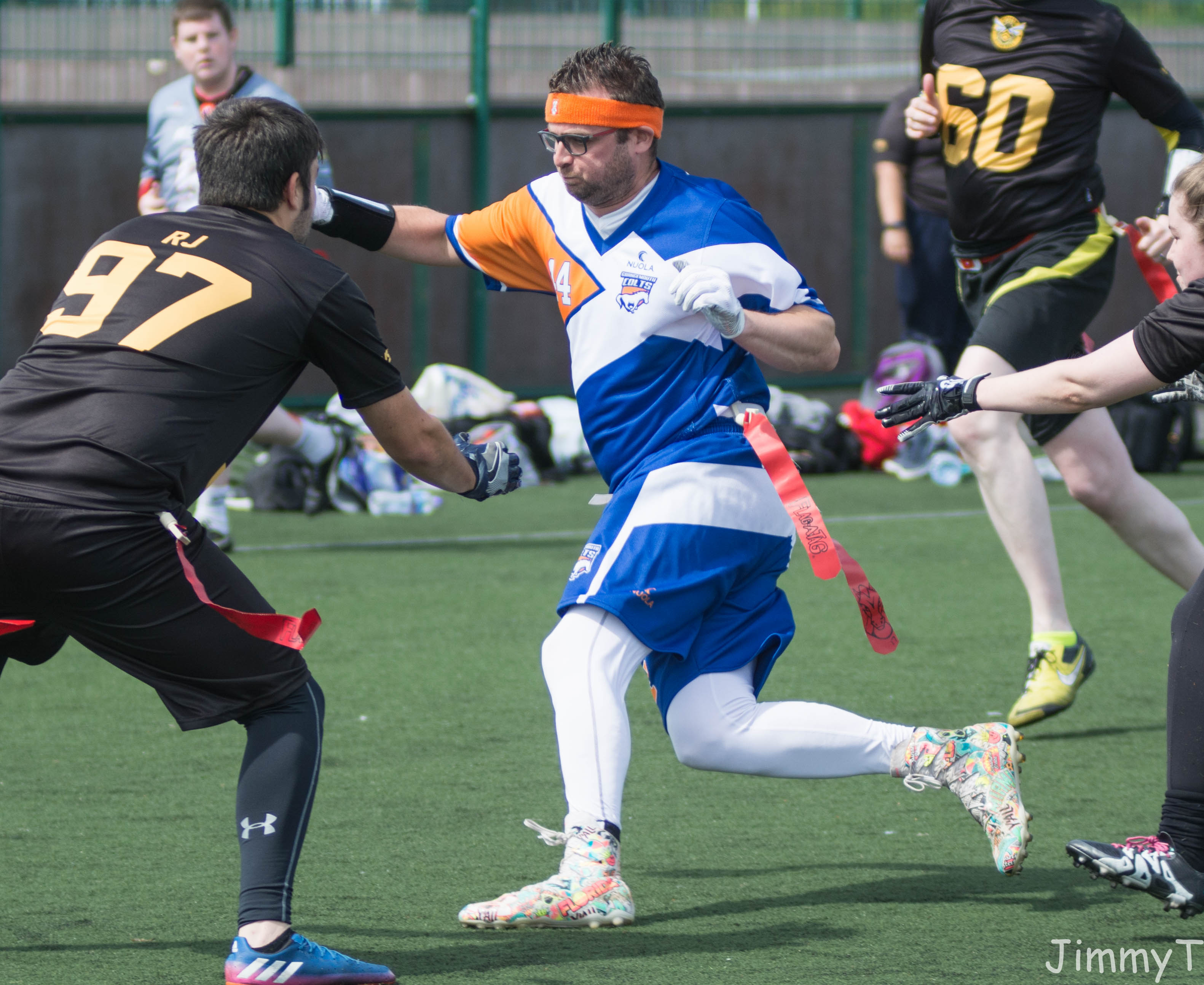 Having beaten the Killer Bees in their first encounter, there was a degree of optimism around the Colts, but tempered with the knowledge that there had been a bit of a sea change in the Killer Bees game planning. In the end, the Colts defence dominated giving them a 20 – 0 win. Touchdown and Conversion combos for both Steven Cliffe and Mark Wallace, plus a Pick 6 for Andy Brown doing the damage.