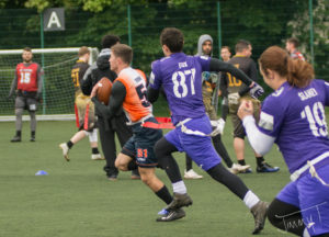The Colts then went straight into our second game against the Renfrewshire Raptors. All of the matches between these two have been close results and the Raptors must have thought it was going to be the day for their first win when they were ahead 20 – 12 at the half, and then extended their lead after the break. But the Colts kept their composure, scored the next two TDs. When when John Heron scored on an intercepted pass the Colts were in the lead. The Colts’ tails were up and the Raptors seemed to succumb to nerves. The Colts score another two TDs to put the game away. 34 unanswered points for the come-back win, 44 – 27.