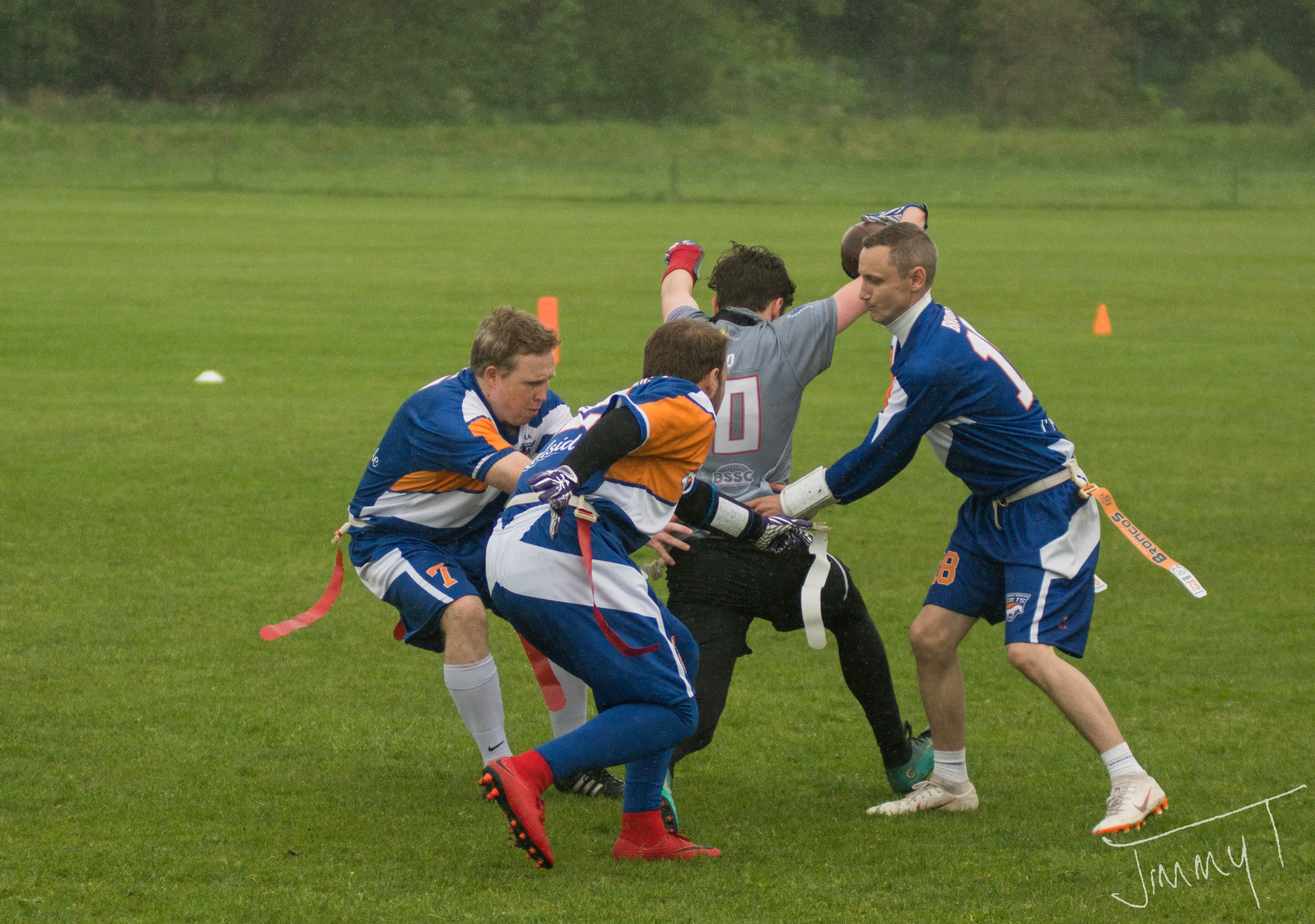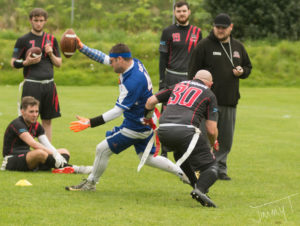 Three wins from three games, outscoring their opponents 140 – 19 was a tremendous result on the day. Unsurprisingly everyone in the Broncos squad put some points on the board. QB McKenzie may not have got into the end-zone himself, but he threw for 16 Touchdowns and 7 conversions. Kevin Woods scored 6 TDs and 4 XPs, Mathew Ross 3 TDs (and threw for a TD), Luke Morrice 2 TDs, Joe McIlwaine 1 Interception returned for a TD, Callum Woods 5 TDs and 1 XP (and threw for a TD), Jimmy Thomson 1 TD, Calum Young 1 TD, Liam Fleming 2 Ints returned for TDs and 2 XPs.