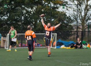Game three against the Sheffield Vipers was expected to be the toughest game. So when Brown threw a pass to Mark Wallace in the end-zone, then an XP to Thomson, the Broncos had their noses in front. Unfortunately, the Broncos couldn’t maintain the pressure against a strong Vipers squad. Sheffield scored three unanswered TDs for an 18 – 6 win.